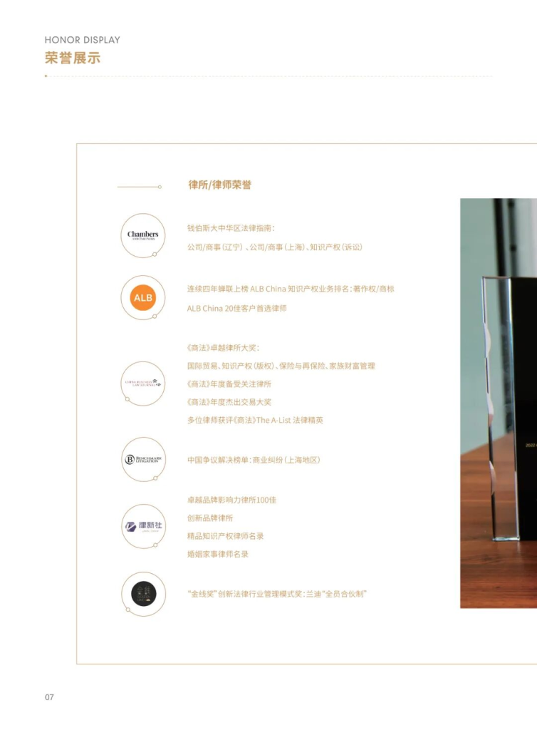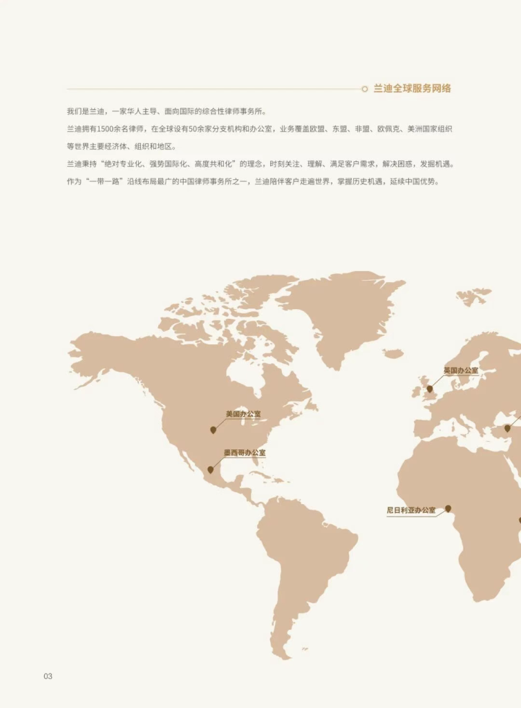 Landing Law Offices (Jinan) (hereinafter referred to as “Landing Jinan”) was officially established in August 2018. As a benchmark institution for Landing Law Offices to deepen its presence in overseas markets and feed back to the domestic sector, it has built a global legal service network by virtue of the headquarters’ global strategic layout. Rooted in Shanghai, the headquarters of Landing Law Offices has set up branch offices in 33 core cities across China and established branches in more than 20 countries. Particularly, it has forged an industry-leading layout advantage in developing countries along the “Belt and Road” initiative, emerging as a core legal partner for Chinese enterprises in their internationalization drive. With its innovative “All-Equity Partnership System”, Landing Law Offices has won the inaugural Golden Line Award for “Innovative Legal Industry Management Model”, been honored with the prestigious Commercial Law China Excellence Law Firm Award for two consecutive years, and ranked on the ALB China IP Rankings for Copyright & Trademark, demonstrating widely recognized brand strength in the industry.
